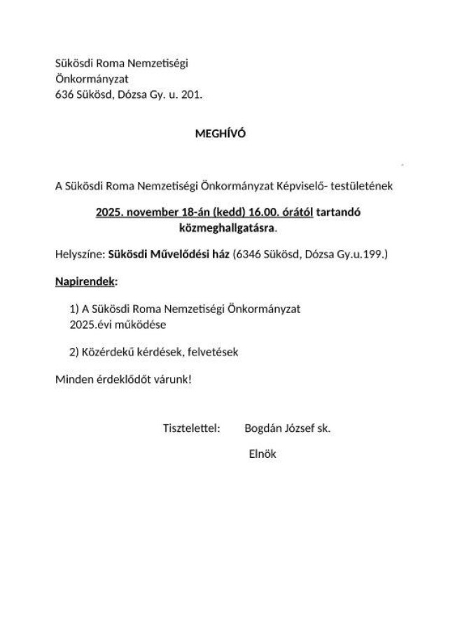Cím: Sükösd, Dózsa Gy. út 201. KMB iroda