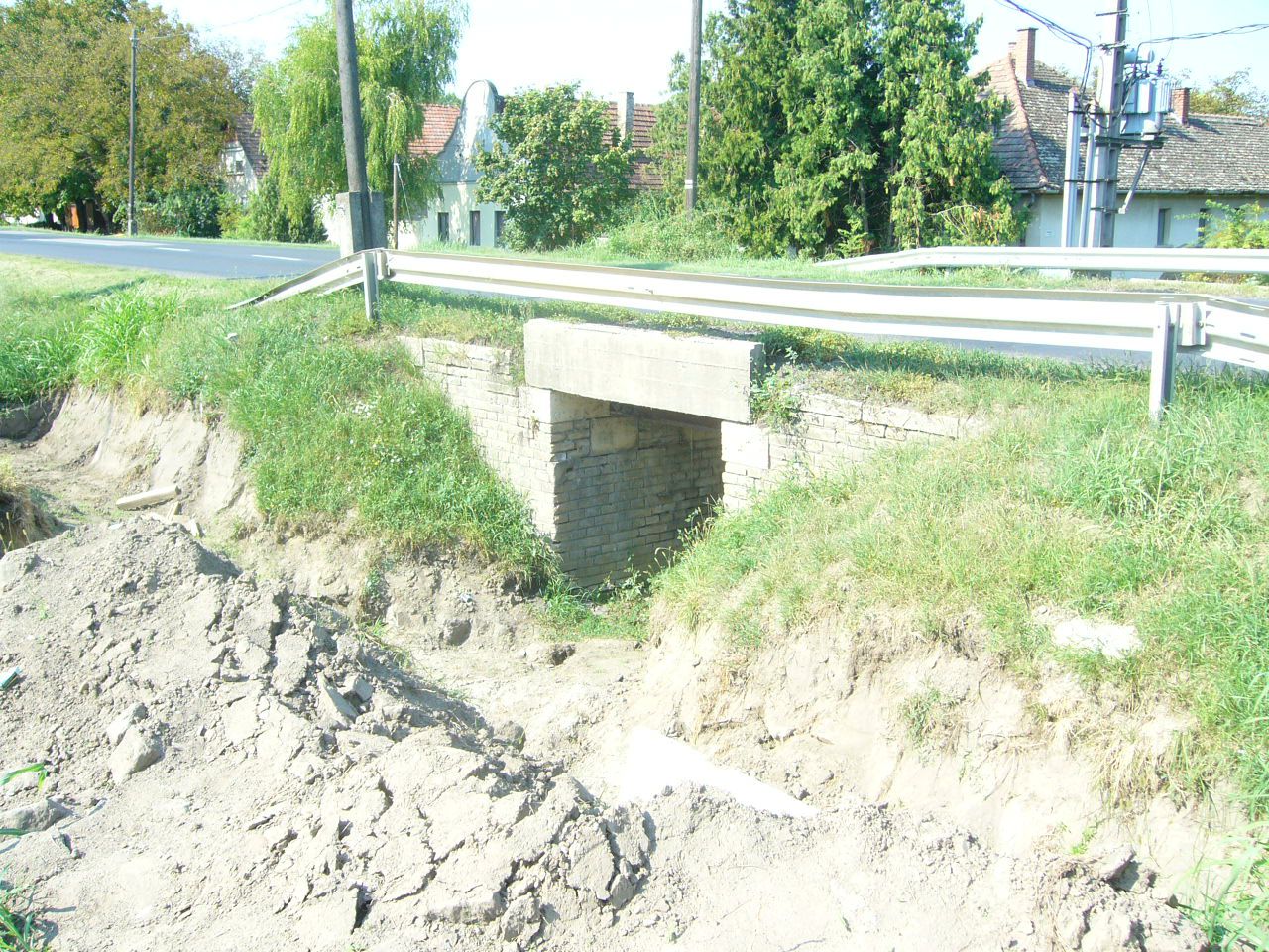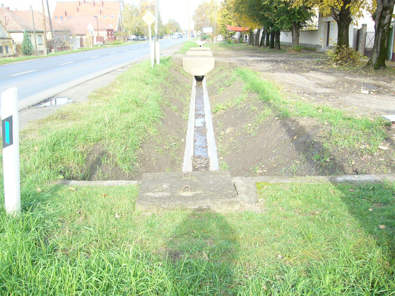 A főút feletti része a csatlakozó árkok és műtárgyak rendszere nem összehangolt, ezért időszakos elöntések keletkeznek veszélyeztetve a 145 házszámú ingatlant. A közútra merőleges árokszakasz 60 m hosszban történő visszabontására és újraépítésére, áteresszel és burkolt mederrel történik. A főúttal párhuzamos útárok mindkét irányban 50-50 m hosszban burkolattal kerül ellátásra, a szakaszon belül lévő átereszek átépítésével.