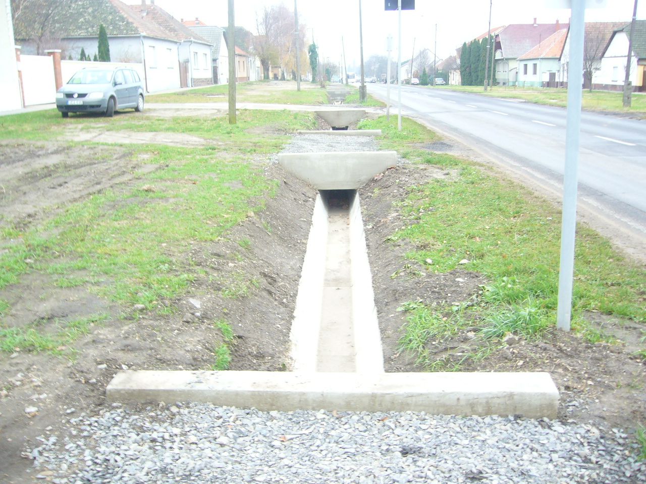 Első lépcsőben a két legkritikusabb csomópont rendezése a feladat. A beavatkozás eredményeként rendezett, a falusias környezetbe jól illeszkedő burkolt meder és befogadó csomópont alakul ki, megfelelő méretű átereszekkel. A mederburkolást a rendkívüli kis esés és a fenntartási munkák egyszerűsége indokolja.