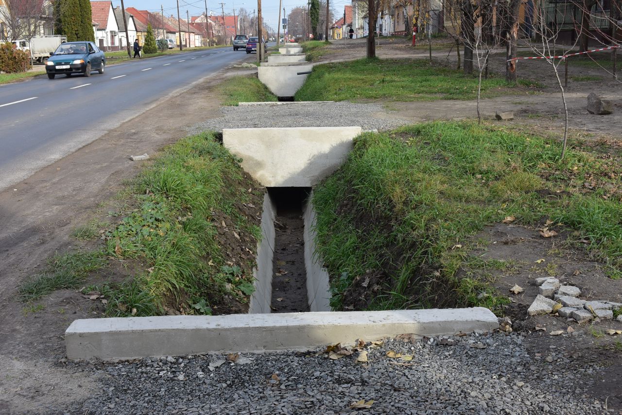 2019. novemberére a kivitelezés során elkészültek a burkolt árkok, a bejárók fel lettek töltve. Kitisztították a bokrokkal, fákkal benőtt Szabadság utcával szembeni levezető árkot, a Szabadság utcából a DVCS irányába átfolyó víz útját szabaddá tették. Hamarosan elkészülnek a bejárók betonozásai és a Templom utcával szembeni levezető árok tisztítása is.
