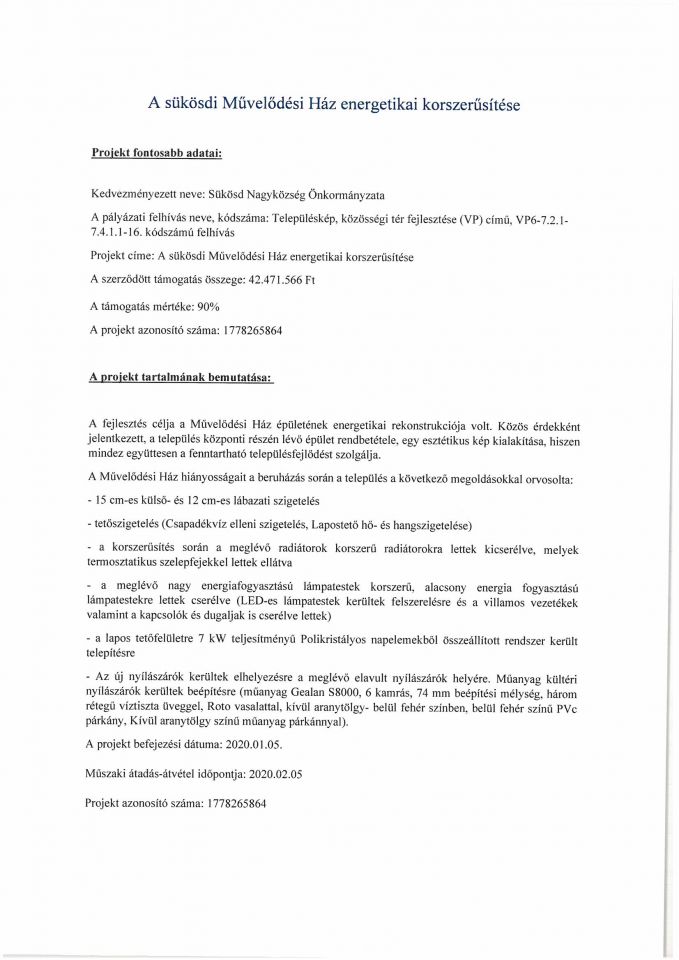 Cím: Sükösd, Dózsa Gy. út 201. KMB iroda