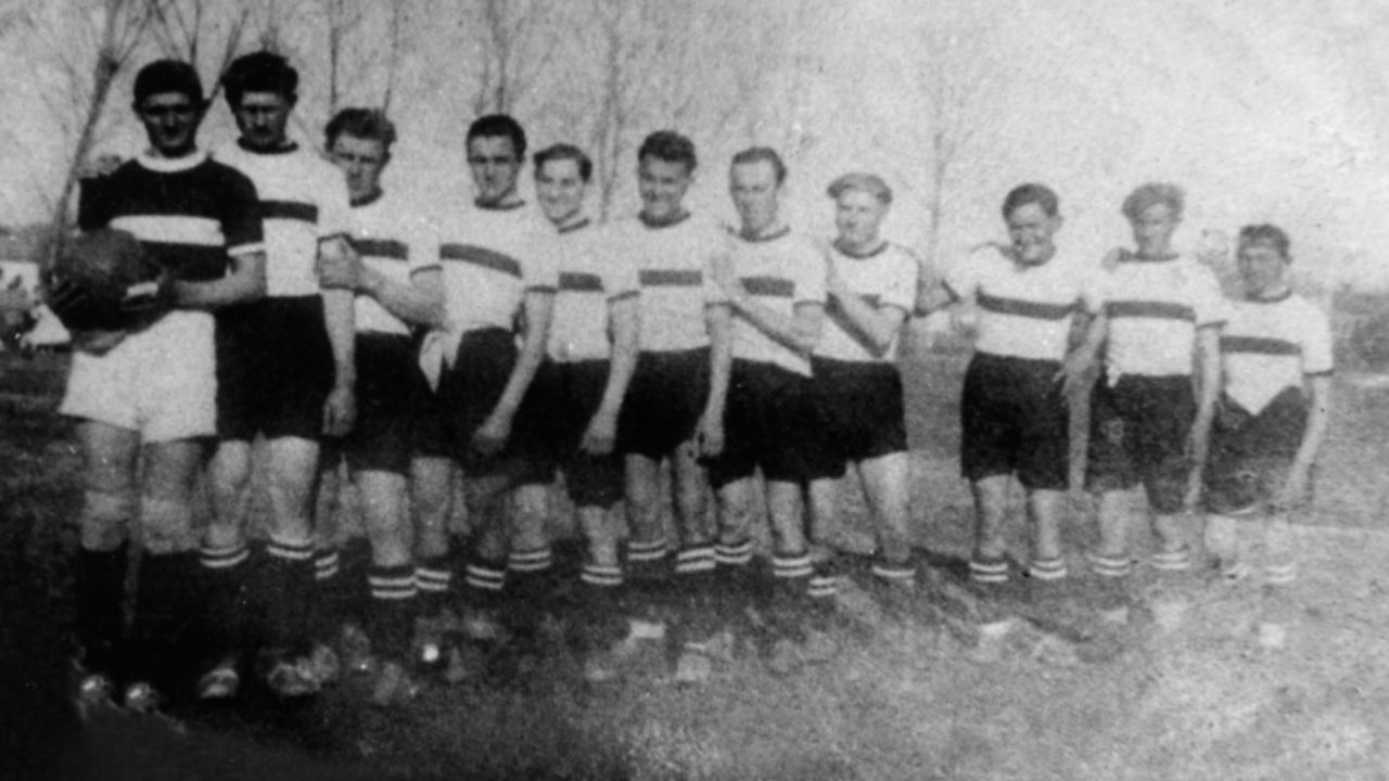 A második képen a futballcsapat az első „igazi” felszerelésben, balról jobbra: Bajai Péter, Bachmann János, Rácz József, Lógó András, Rozmanicz József, ???, Farkas György, Hirschenberger József, Bujdosó József, Hunyák József, Bajai József. Közülük - tudomásom szerint - csak Bujdosó József él, neki is jó egészséget kíván: